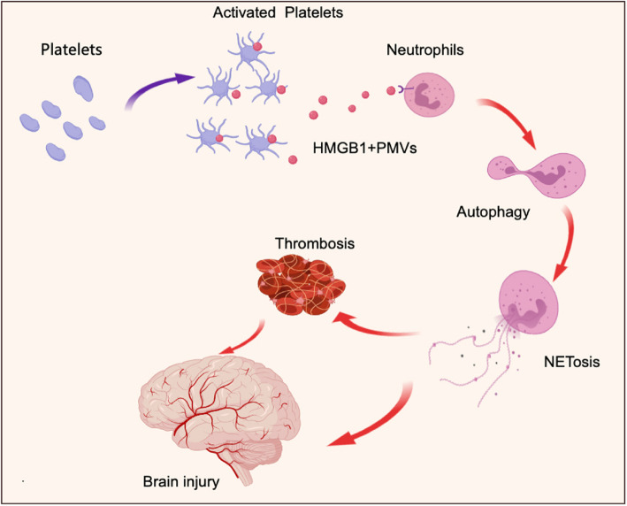Conclusions: NETs mediated by PMVs derived HMGB1 exacerbate thrombosis and brain injury in AIS. Video Abstract.