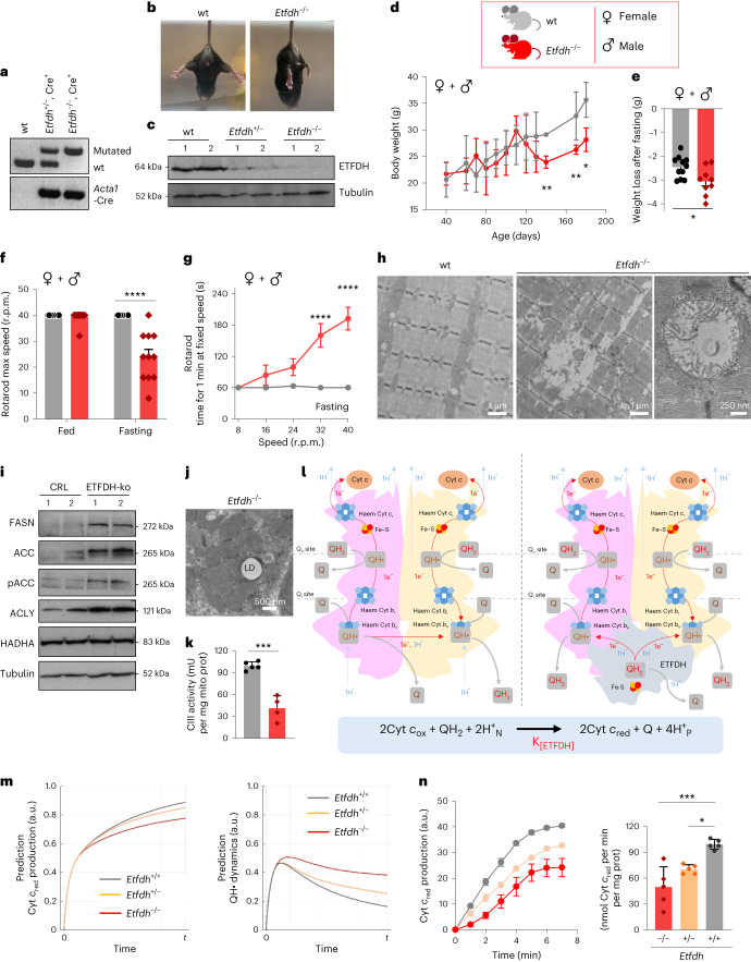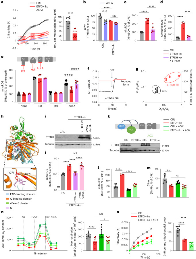 Coenzyme Q (Q) is a key lipid electron transporter, but several aspects of its biosynthesis and redox homeostasis remain undefined. Various flavoproteins reduce ubiquinone (oxidized form of Q) to ubiquinol (QH2); however, in eukaryotes, only oxidative phosphorylation (OXPHOS) complex III (CIII) oxidizes QH2 to Q. The mechanism of action of CIII is still debated. Herein, we show that the Q reductase electron-transfer flavoprotein dehydrogenase (ETFDH) is essential for CIII activity in skeletal muscle. We identify a complex (comprising ETFDH, CIII and the Q-biosynthesis regulator COQ2) that directs electrons from lipid substrates to the respiratory chain, thereby reducing electron leaks and reactive oxygen species production. This metabolon maintains total Q levels, minimizes QH2-reductive stress and improves OXPHOS efficiency. Muscle-specific Etfdh-/- mice develop myopathy due to CIII dysfunction, indicating that ETFDH is a required OXPHOS component and a potential therapeutic target for mitochondrial redox medicine.