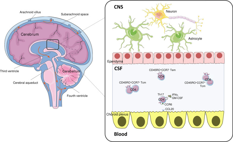 The central nervous system (CNS) is finely protected by the blood-brain barrier (BBB). Immune soluble factors such as cytokines (CKs) are normally produced in the CNS, contributing to physiological immunosurveillance and homeostatic synaptic scaling. CKs are peptide, pleiotropic molecules involved in a broad range of cellular functions, with a pivotal role in resolving the inflammation and promoting tissue healing. However, pro-inflammatory CKs can exert a detrimental effect in pathological conditions, spreading the damage. In the inflamed CNS, CKs recruit immune cells, stimulate the local production of other inflammatory mediators, and promote synaptic dysfunction. Our understanding of neuroinflammation in humans owes much to the study of multiple sclerosis (MS), the most common autoimmune and demyelinating disease, in which autoreactive T cells migrate from the periphery to the CNS after the encounter with a still unknown antigen. CNS-infiltrating T cells produce pro-inflammatory CKs that aggravate local demyelination and neurodegeneration. This review aims to recapitulate the state of the art about CKs role in the healthy and inflamed CNS, with focus on recent advances bridging the study of adaptive immune system and neurophysiology.