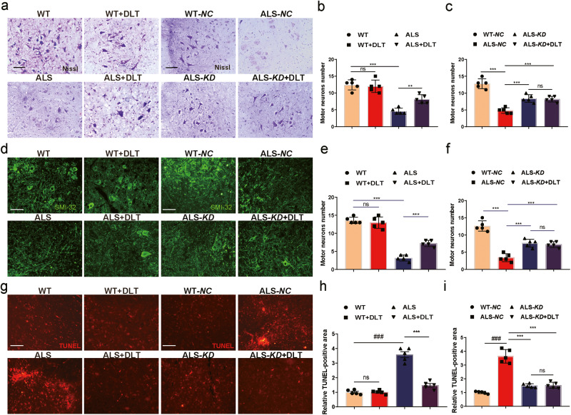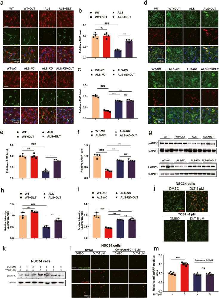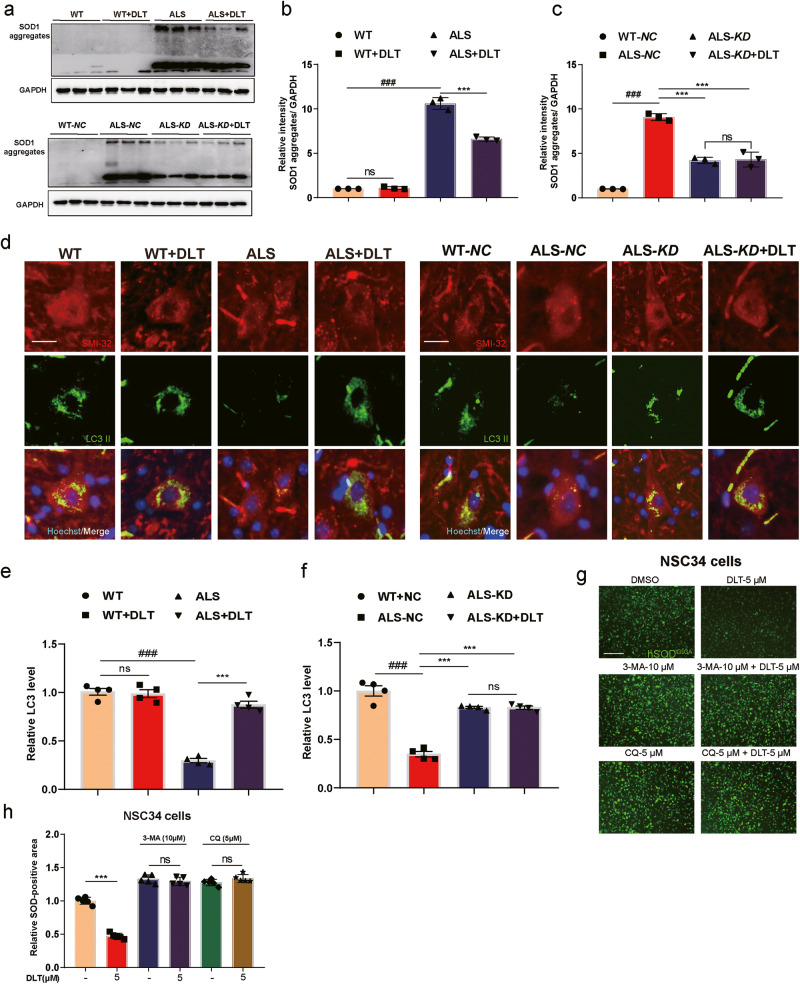 Amyotrophic lateral sclerosis (ALS) is a fatal neurodegenerative disease with progressive loss of motor neurons in the spinal cord, cerebral cortex and brain stem. ALS is characterized by gradual muscle atrophy and dyskinesia. The limited knowledge on the pathology of ALS has impeded the development of therapeutics for the disease. Previous studies have shown that autophagy and astrocyte-mediated neuroinflammation are involved in the pathogenesis of ALS, while 5HTR2A participates in the early stage of astrocyte activation, and 5HTR2A antagonism may suppress astrocyte activation. In this study, we evaluated the therapeutic effects of desloratadine (DLT), a selective 5HTR2A antagonist, in human SOD1G93A (hSOD1G93A) ALS model mice, and elucidated the underlying mechanisms. HSOD1G93A mice were administered DLT (20 mg·kg-1·d-1, i.g.) from the age of 8 weeks for 10 weeks or until death. ALS onset time and lifespan were determined using rotarod and righting reflex tests, respectively. We found that astrocyte activation accompanying with serotonin receptor 2 A (5HTR2A) upregulation in the spinal cord was tightly associated with ALS-like pathology, which was effectively attenuated by DLT administration. We showed that DLT administration significantly delayed ALS symptom onset time, prolonged lifespan and ameliorated movement disorders, gastrocnemius injury and spinal motor neuronal loss in hSOD1G93A mice. Spinal cord-specific knockdown of 5HTR2A by intrathecal injection of adeno-associated virus9 (AAV9)-si-5Htr2a also ameliorated ALS pathology in hSOD1G93A mice, and occluded the therapeutic effects of DLT administration. Furthermore, we demonstrated that DLT administration promoted autophagy to reduce mutant hSOD1 levels through 5HTR2A/cAMP/AMPK pathway, suppressed oxidative stress through 5HTR2A/cAMP/AMPK/Nrf2-HO-1/NQO-1 pathway, and inhibited astrocyte neuroinflammation through 5HTR2A/cAMP/AMPK/NF-κB/NLRP3 pathway in the spinal cord of hSOD1G93A mice. In summary, 5HTR2A antagonism shows promise as a therapeutic strategy for ALS, highlighting the potential of DLT in the treatment of the disease. DLT as a 5HTR2A antagonist effectively promoted autophagy to reduce mutant hSOD1 level through 5HTR2A/cAMP/AMPK pathway, suppressed oxidative stress through 5HTR2A/cAMP/AMPK/Nrf2-HO-1/NQO-1 pathway, and inhibited astrocytic neuroinflammation through 5HTR2A/cAMP/AMPK/NF-κB/NLRP3 pathway in the spinal cord of hSOD1G93A mice.