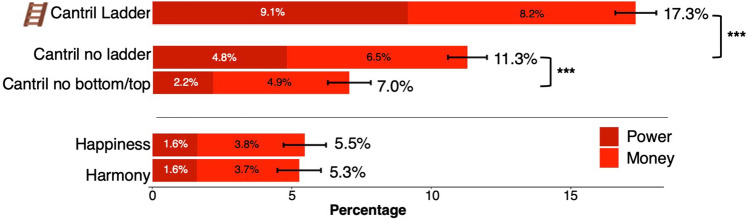 The Cantril Ladder elicits thoughts about power and wealth