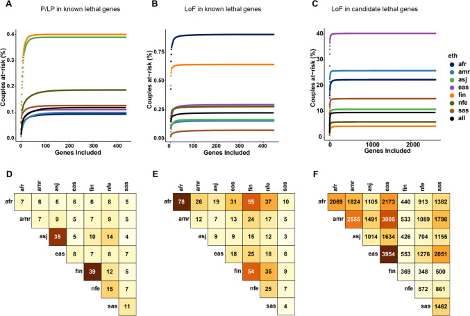 Results: This study identified 138 genes in which heterozygous lethal variants are present in the general population with a frequency of 0.5% or greater. Screening for these 138 genes could identify 4.6% (in the Finnish population) to 39.8% (in the East Asian population) of couples at risk of miscarriage. This explains the cause of pregnancy loss in approximately 1.1-10% of cases affected by biallelic lethal variants.