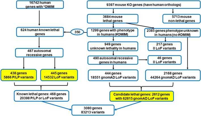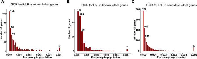 Methods: We analyzed 125,748 human exome sequences and mouse and human gene function databases. Our goals were to identify genes crucial for human fetal survival (lethal genes), to find variants not present in a homozygous state in healthy humans, and to estimate carrier rates of known and candidate lethal genes in various populations and ethnic groups.