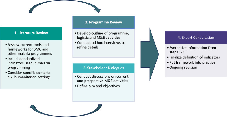 Methods: The Framework was developed through a literature and programme review, and stakeholder dialogues across three implementing countries-Burkina Faso, Chad, and Nigeria. Expert consultation further refined the Framework through an iterative approach drawing upon data collected through the three sources. The Framework was designed using the Logical Framework Approach incorporating external factors and intentionally aligned with global malaria M&E standards.