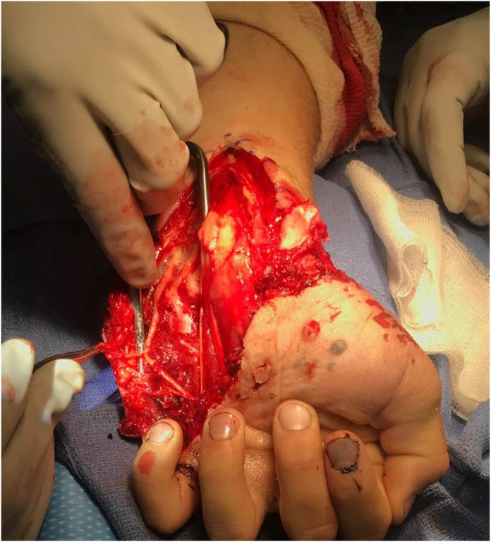 Keywords: Fourth metacarpal fracture; Hamate fracture; Open; Scaphoid dislocation; Volar.