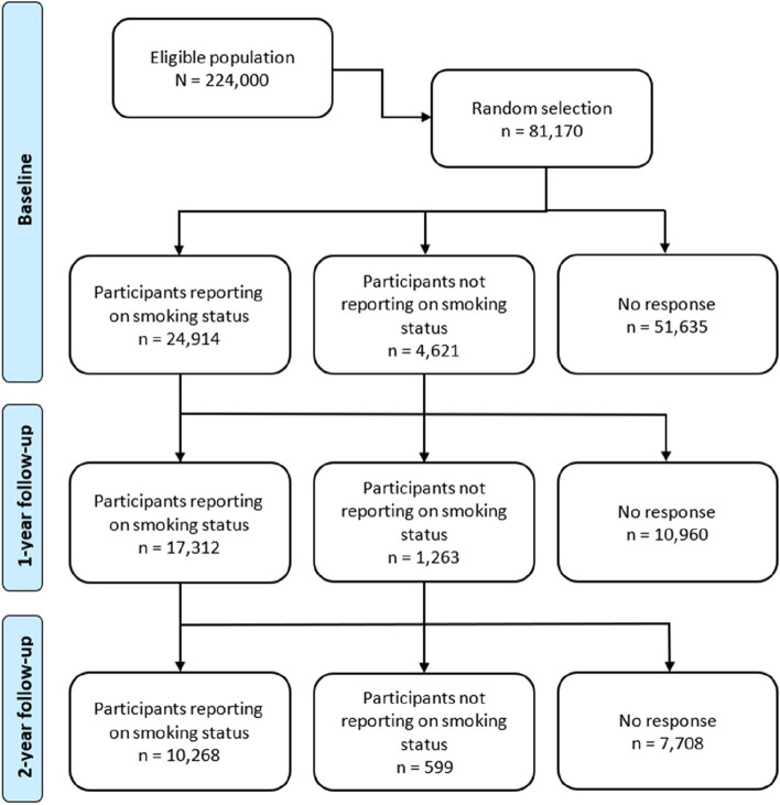 Methods: Data were collected in April 2020 (baseline), January 2021, and January 2022 in Bergen, Norway, from an online longitudinal population-based survey. Smoking tobacco (the outcome variable) was dichotomized based on the responses to the question of whether participants smoked cigarettes or not. Tobacco smoking and its associations with psychological distress were assessed among 24,914 participants (response rate 36%) in a mixed model regression presented with coefficients and 95% confidence intervals (CI), adjusting for COVID-19-related worries, home office/study, occupational situation, age, gender, education, having children below 18 years living at home, living alone, and alcohol consumption.