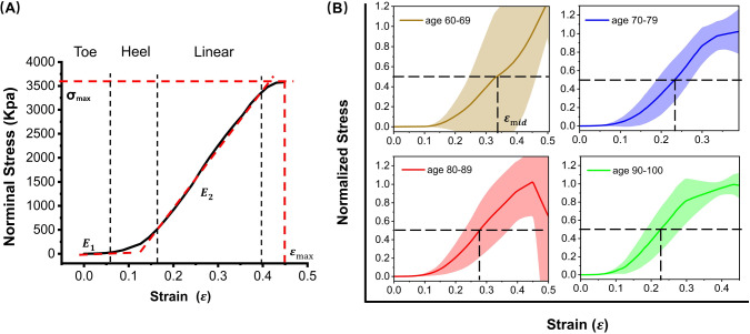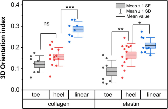 Uniaxial mechanical stretch properties correlated with three-dimensional microstructure of human dermal skin