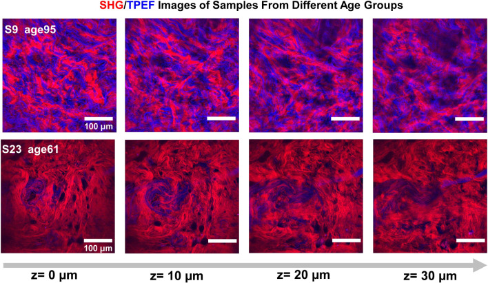 - Bancelin Stéphane, Lynch Barbara, Bonod-Bidaud Christelle, Ducourthial Guillaume, Psilodimitrakopoulos Sotiris, Dokládal Petr, Allain Jean-Marc, Schanne-Klein Marie-Claire, Ruggiero Florence. Ex vivo multiscale quantitation of skin biomechanics in wild-type and genetically-modified mice using multiphoton microscopy. Sci Rep. 2015;5(1):17635. doi: 10.1038/srep17635. - DOI - PMC - PubMed