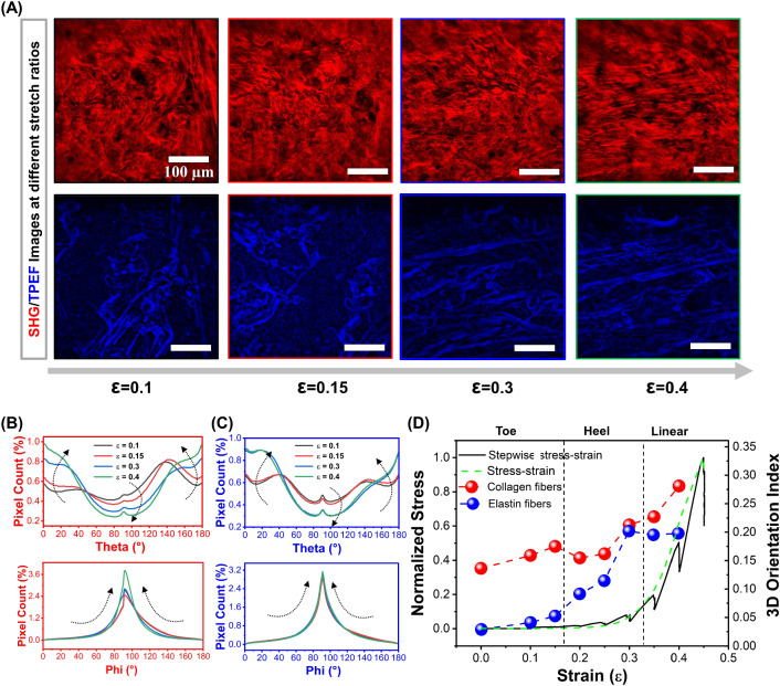 Keywords: Collagen fibers; Elastin fibers; Human skin; Mechanical properties; Second harmonic generation; Uniaxial skin stretch.