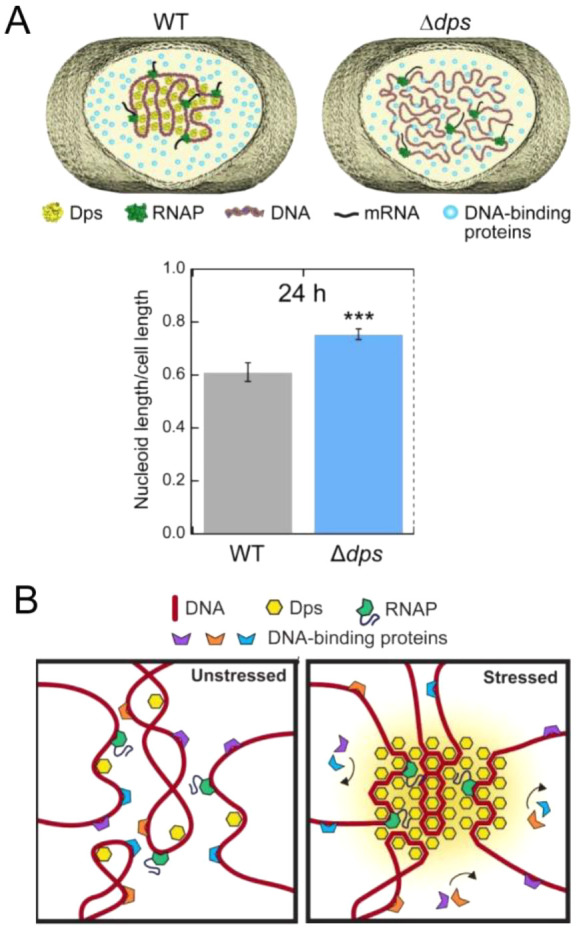 Macromolecular crowding affects the activity of proteins and functional macromolecular complexes in all cells, including bacteria. Crowding, together with physicochemical parameters such as pH, ionic strength, and the energy status, influences the structure of the cytoplasm and thereby indirectly macromolecular function. Notably, crowding also promotes the formation of biomolecular condensates by phase separation, initially identified in eukaryotic cells but more recently discovered to play key functions in bacteria. Bacterial cells require a variety of mechanisms to maintain physicochemical homeostasis, in particular in environments with fluctuating conditions, and the formation of biomolecular condensates is emerging as one such mechanism. In this work, we connect physicochemical homeostasis and macromolecular crowding with the formation and function of biomolecular condensates in the bacterial cell and compare the supramolecular structures found in bacteria with those of eukaryotic cells. We focus on the effects of crowding and phase separation on the control of bacterial chromosome replication, segregation, and cell division, and we discuss the contribution of biomolecular condensates to bacterial cell fitness and adaptation to environmental stress.
