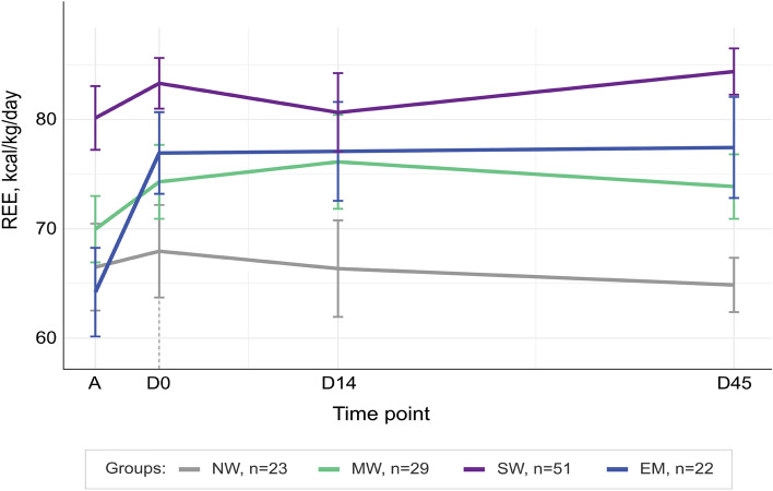 Trajectories of resting energy expenditure and performance of predictive equations in children hospitalized with an acute illness and malnutrition: a longitudinal study