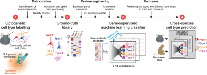 A deep learning strategy to identify cell types across species from high-density extracellular recordings.Cell. 2025 Apr 17;188(8):2218-2234.e22. doi: 10.1016/j.cell.2025.01.041. Epub 2025 Feb 28. Cell. 2025. PMID: 40023155