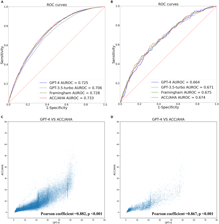 Cardiovascular disease (CVD) remains a pressing global health concern. While traditional risk prediction methods such as the Framingham and American College of Cardiology/American Heart Association (ACC/AHA) risk scores have been widely used in the practice, artificial intelligence (AI), especially GPT-4, offers new opportunities. Utilizing large scale of multi-center data from 47,468 UK Biobank participants and 5,718 KoGES participants, this study quantitatively evaluated the predictive capabilities of GPT-4 in comparison with traditional models. Our results suggest that the GPT-based score showed commendably comparable performance in CVD prediction when compared to traditional models (AUROC on UKB: 0.725 for GPT-4, 0.733 for ACC/AHA, 0.728 for Framingham; KoGES: 0.664 for GPT-4, 0.674 for ACC/AHA, 0.675 for Framingham). Even with omission of certain variables, GPT-4's performance was robust, demonstrating its adaptability to data-scarce situations. In conclusion, this study emphasizes the promising role of GPT-4 in predicting CVD risks across varied ethnic datasets, pointing toward its expansive future applications in the medical practice.