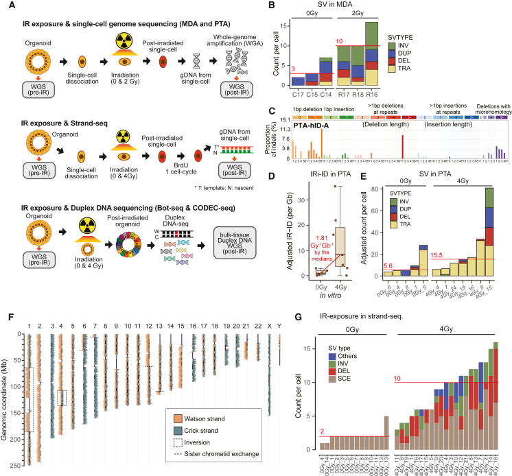 Keywords: carcinogen; clonalization; complex genomic rearrangement; ionizing radiation; irradiation dose; mutational signature; normal cell; single-base substitution; single-genome sequencing; structural variation.