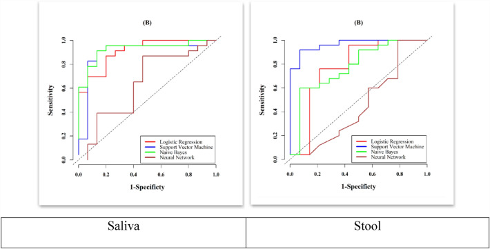 Conclusion: Through meticulous selection of saliva and stool microbes based on Mean Decrease GINI values and employing logistic regression for saliva and support vector machine models for stool, we successfully developed a microbiota test with heightened sensitivity and specificity for early CRC detection.