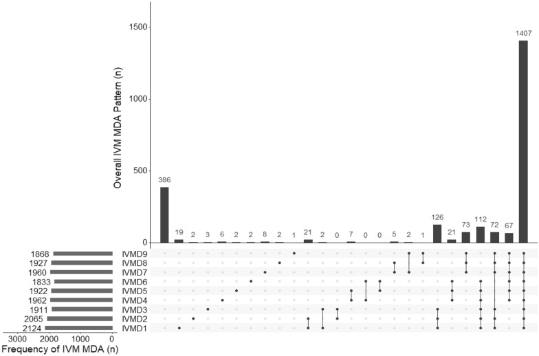 Methods: Coverage data was extracted from the MASSIV trial study database, with every datapoint being a directly observed therapy (DOT). A complete month of MDA was classified as receiving all three daily doses of treatment. For both ivermectin and DHP, ordinal logistic regression was used to identify individual and household level variables associated with non-participation.