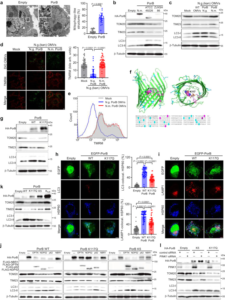 Gonococcal OMV-delivered PorB induces epithelial cell mitophagy