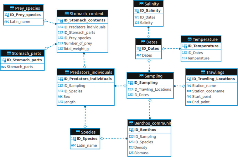 The dataset presents a compilation of stomach contents from six demersal fish species from two functional groups inhabiting the Baltic Sea. It includes detailed information on prey identities, body masses, and biomasses recovered from both the fish's digestive systems and their surrounding environment. Environmental parameters, such as salinity and temperature levels, have been integrated to enrich this dataset. The juxtaposition of information on prey found in stomachs and in the environment provides an opportunity to quantify trophic interactions across different environmental contexts and investigate how fish foraging behaviour adapts to changes in their environment, such as an increase in temperature. The compilation of body mass and taxonomic information for all species allows approaching these new questions using either a taxonomic (based on species identity) or functional trait (based on body mass) approach.