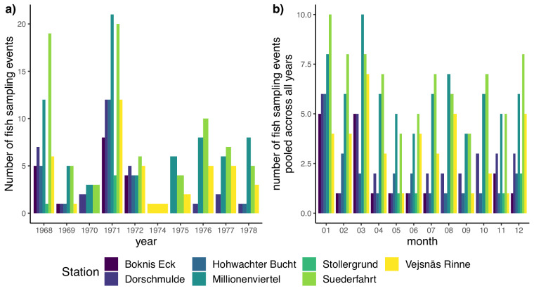 Quantitative description of six fish species' gut contents and prey abundances in the Baltic Sea (1968-1978)