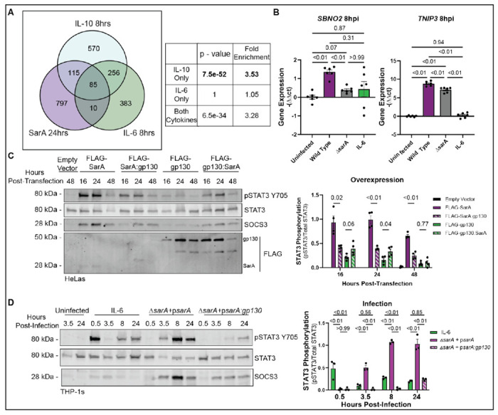 A single amino acid in the Salmonella effector SarA/SteE triggers supraphysiological activation of STAT3 for anti-inflammatory target gene expression