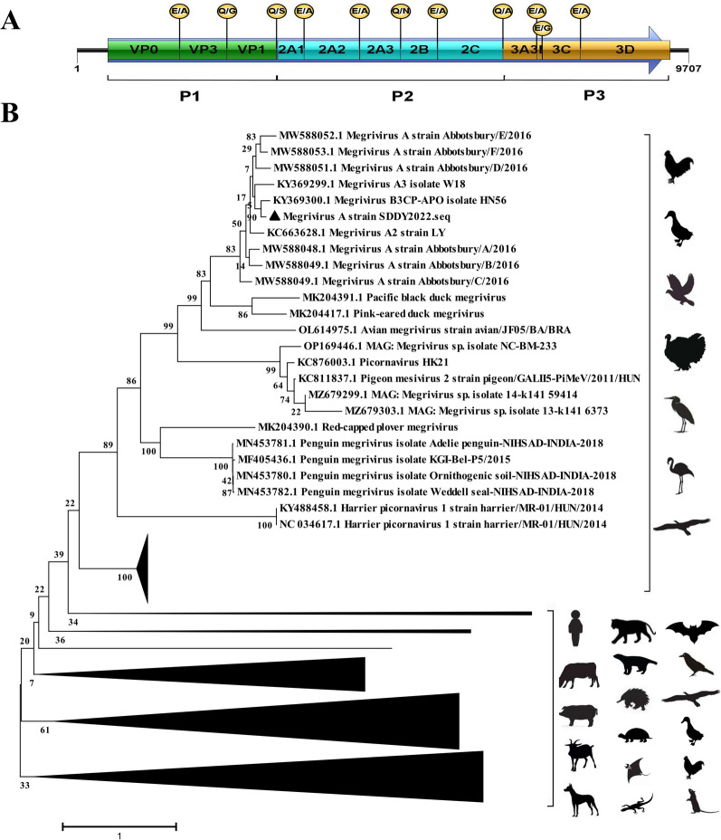 Methods: Using a viral metagenomics approach, we analyzed the virome of tissues of the dead captive red-crowned crane with diarrhea symptoms in Dongying Biosphere Reserve, Shandong Province, China and feces of individual birds breeding at the corresponding captive breeding center, which were pooled separately.