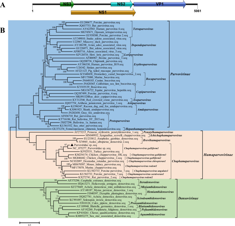 Results: There is much more DNA and RNA viruses in the feces than that of the tissues. RNA virus belonging to the families Picornaviridae, and DNA viruses belonging to the families Parvoviridae, associated with enteric diseases were detected in the tissues and feces. Genomes of the picornavirus, genomovirus, and parvovirus identified in the study were fully characterized, which further suggested that infectious viruses of these families were possibly presented in the diseased red-crowned crane.
