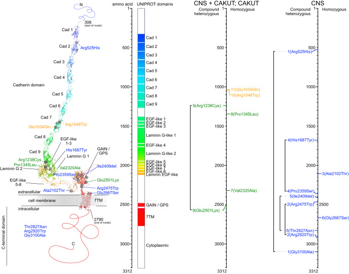 CELSR3 codes for a planar cell polarity protein. We describe twelve affected individuals from eleven independent families with bi-allelic variants in CELSR3. Affected individuals presented with an overlapping phenotypic spectrum comprising central nervous system (CNS) anomalies (7/12), combined CNS anomalies and congenital anomalies of the kidneys and urinary tract (CAKUT) (3/12) and CAKUT only (2/12). Computational simulation of the 3D protein structure suggests the position of the identified variants to be implicated in penetrance and phenotype expression. CELSR3 immunolocalization in human embryonic urinary tract and transient suppression and rescue experiments of Celsr3 in fluorescent zebrafish reporter lines further support an embryonic role of CELSR3 in CNS and urinary tract formation.