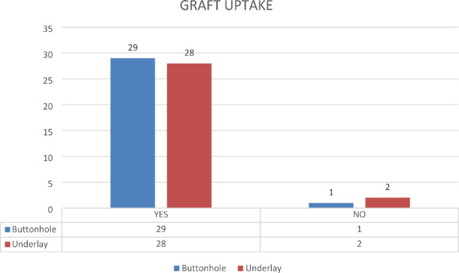 Objective: To compare and analyze graft uptake and hearing outcome in button hole technique and underlay technique.