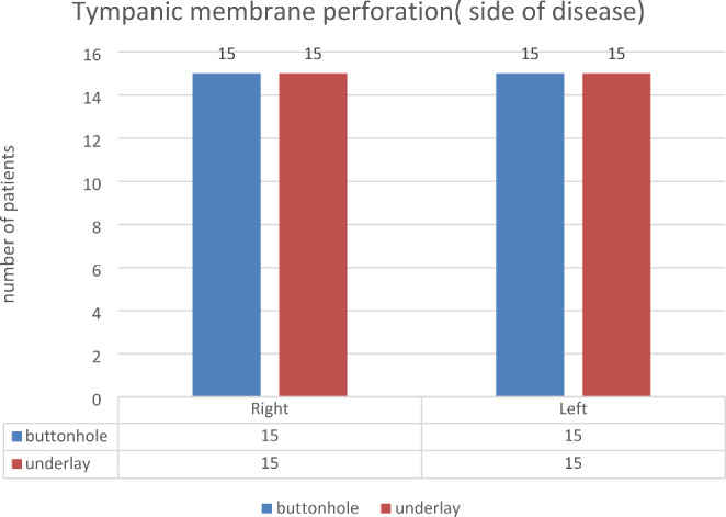 Interpretation and conclusion: Buttonhole technique is better in terms of graft uptake since the graft is anchored to the handle of malleus, and postoperatively medialisation of graft and other complications like lateralization of graft, epithelial pearl formation and anterior blunting is prevented. Both techniques are good in terms of hearing improvement for chronic otitis media with medium sized perforation with moderateconductive hearing loss.