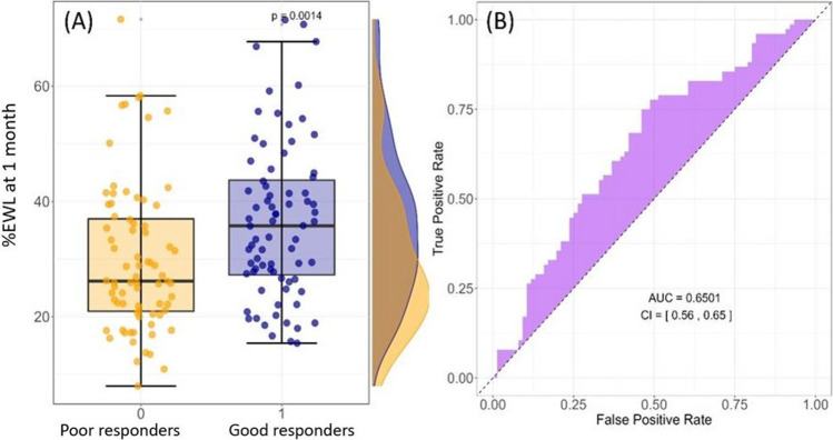 Results: A total of 315 subjects (73% women) were included, with 73% of patients exhibiting an Excess weight loss percentage (%EWL) >25% at the 24 months. Neither demographic parameters (age and sex), smoking habits, and menopause in women nor the presence of comorbidities proved potential predictive value. Interestingly, the %EWL at 1 month after ESG was the strongest predictor of 24-month therapeutic success. Subsequently, we estimated an "early threshold for success" for 1 month-%EWL by employing Youden's index method.