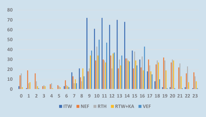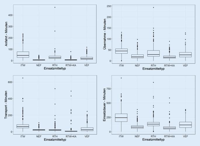 Diskussion: Arztbegleitete IHT nehmen einen relevanten Anteil am Einsatzspektrum des Rettungsdiensts ein und betreffen sowohl Rettungsmittel der Primärversorgung als auch spezialisierte Rettungsmittel. Außerhalb der Vorhaltezeiten von ITW/VEF übernehmen Notarzteinsatzfahrzeuge (NEF) und Rettungstransporthubschrauber (RTH) vorrangig die Transporte. Für die nächtlichen Notfalltransporte ist aufgrund des Zeitvorteils eine Ausweitung der luftgebundenen Verlegungskapazitäten zu erwägen. Für weniger dringliche Transporte könnte eine Anpassung der Kapazitäten spezialisierter bodengebundener Rettungsmittel in Schleswig-Holstein sinnvoll sein.