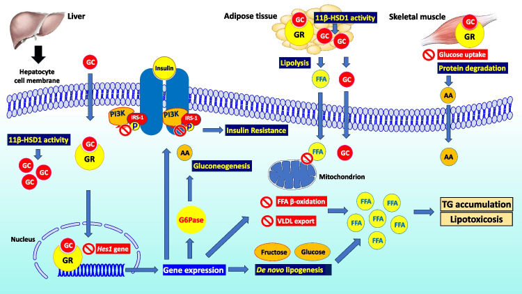 Recent findings: Glucocorticoids, commonly used for managing many inflammatory and autoimmune diseases, may contribute to the development and progression of MASLD. Glucocorticoids may induce hyperglycemia and hyperinsulinemia, thus increasing systemic and hepatic insulin resistance, a hallmark of MASLD pathogenesis. Furthermore, glucocorticoids increase adipose tissue lipolysis, and hepatic de novo lipogenesis and decrease hepatic fatty acid β-oxidation, thus promoting MASLD development. Preclinical evidence also suggests that glucocorticoids may adversely affect hepatic inflammation and fibrosis. 11beta-hydroxysteroid dehydrogenase type 1 (11β-HSD1) and 5α-reductase are implicated in the link between glucocorticoids and MASLD, the former enzyme increasing and the latter reducing the glucocorticoid action on the liver. Treatment considerations exist due to the pathogenic link between glucocorticoids and MASLD. Since iatrogenic hypercortisolism is common, glucocorticoids should be used at the minimum daily dose to control the subjective disease. Furthermore, the pharmacologic inhibition of 11β-HSD1 has provided favorable results in MASLD, both in preclinical studies and early MASH clinical trials. Glucocorticoids are closely linked to MASLD pathophysiology, with specific clinical and therapeutic implications.