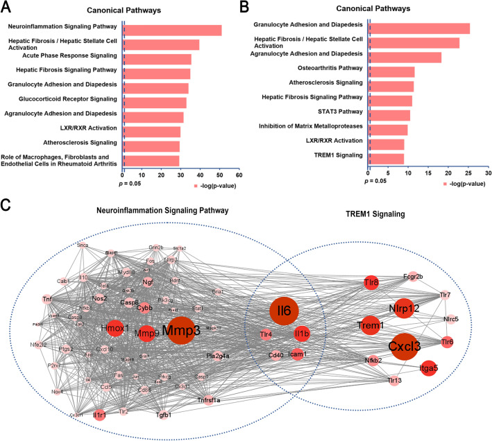 Results: SalC treatment significantly reduced infarct volume, improved neurological deficits, and reversed pathological changes in the tMCAO mouse model. The integration of RNA sequencing data revealed an 80% gene reversion rate induced by SalC within the CID network. Among the reverted genes, 53.1% exhibited reversion rates exceeding 50%, emphasizing the comprehensive rebalancing effect of SalC within the CID network. Neuroinflammatory-related pathways regulated by SalC, including the toll-like-receptor 4 (TLR4)- triggering receptor expressed on myeloid cells 1 (TREM1)-nuclear factor kappa B (NF-κB) pathway, were identified. Further in vivo and in vitro experiments confirmed that TLR4-TREM1-NF-κB pathway was down-regulated by SalC in microglia, which was essential for its anti-inflammatory effect on ischemic stroke.