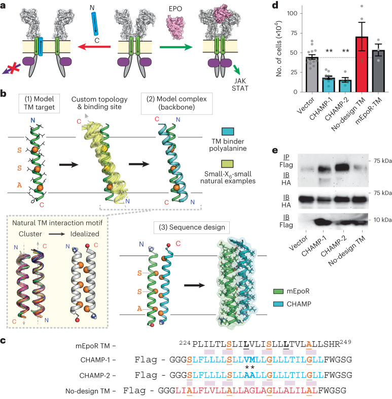 De novo-designed transmembrane proteins bind and regulate a cytokine receptor