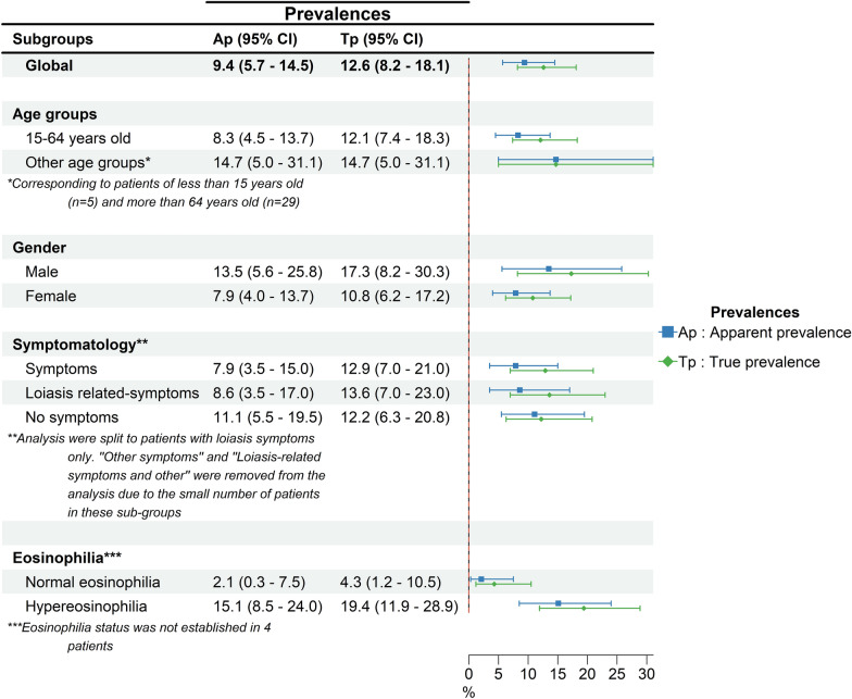 Methods: The study population was recruited among patients of the Department of Parasitology-Mycology-Tropical Medicine over a period of 1 year. Age, sex, symptoms, and eosinophilia variables were recorded from laboratory registers and medical files. Direct examination of 10 µl of blood, TBS-50, and the leukoconcentration technique with 5 ml of blood were performed for each patient. The classical formula and BLCM were used to determine the diagnostic accuracy of the three techniques as well as the prevalence of microfilaremic loiasis. Three models were built within the framework of BLCM-the BLCM model I and alternative models II and III-for sensitivity analysis.