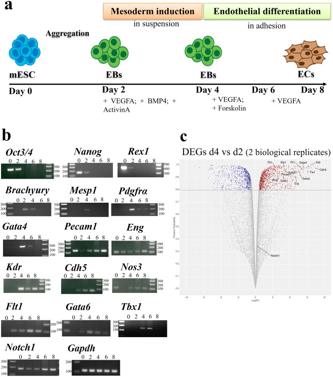 Endothelial cells (EC) differentiate from multiple sources, including the cardiopharyngeal mesoderm, which gives rise also to cardiac and branchiomeric muscles. The enhancers activated during endothelial differentiation within the cardiopharyngeal mesoderm are not completely known. Here, we use a cardiogenic mesoderm differentiation model that activates an endothelial transcription program to identify endothelial regulatory elements activated in early cardiogenic mesoderm. Integrating chromatin remodeling and gene expression data with available single-cell RNA-seq data from mouse embryos, we identify 101 putative regulatory elements of EC genes. We then apply a machine-learning strategy, trained on validated enhancers, to predict enhancers. Using this computational assay, we determine that 50% of these sequences are likely enhancers, some of which are already reported. We also identify a smaller set of regulatory elements of well-known EC genes and validate them using genetic and epigenetic perturbation. Finally, we integrate multiple data sources and computational tools to search for transcriptional factor binding motifs. In conclusion, we show EC regulatory sequences with a high likelihood to be enhancers, and we validate a subset of them using computational and cell culture models. Motif analyses show that the core EC transcription factors GATA/ETS/FOS is a likely driver of EC regulation in cardiopharyngeal mesoderm.