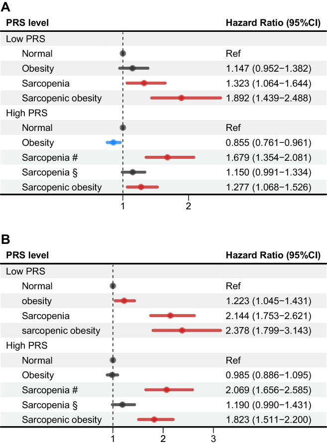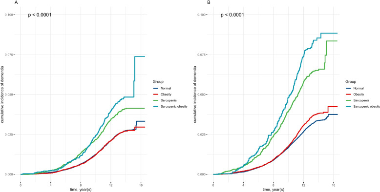 Conclusions: Sarcopenic obesity and sarcopenia were respectively associated with increased dementia risk and advanced dementia onset to vary degree. The role of obesity in dementia may differ by sex and genetic background.