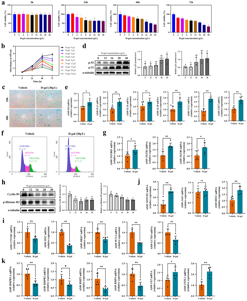 Lung aging triggers the onset of various chronic lung diseases, with alveolar repair being a key focus for alleviating pulmonary conditions. The regeneration of epithelial structures, particularly the differentiation from type II alveolar epithelial (AT2) cells to type I alveolar epithelial (AT1) cells, serves as a prominent indicator of alveolar repair. Nonetheless, the precise role of aging in impeding alveolar regeneration and its underlying mechanism remain to be fully elucidated. Our study employed histological methods to examine lung aging effects on structural integrity and pathology. Lung aging led to alveolar collapse, disrupted epithelial structures, and inflammation. Additionally, a relative quantification analysis revealed age-related decline in AT1 and AT2 cells, along with reduced proliferation and differentiation capacities of AT2 cells. To elucidate the mechanisms underlying AT2 cell functional decline, we employed transcriptomic techniques and revealed a correlation between inflammatory factors and genes regulating proliferation and differentiation. Furthermore, a D-galactose-induced senescence model in A549 cells corroborated our omics experiments and confirmed inflammation-induced cell cycle arrest and a >30% reduction in proliferation/differentiation. Physiological aging-induced chronic inflammation impairs AT2 cell functions, hindering tissue repair and promoting lung disease progression. This study offers novel insights into chronic inflammation's impact on stem cell-mediated alveolar regeneration.