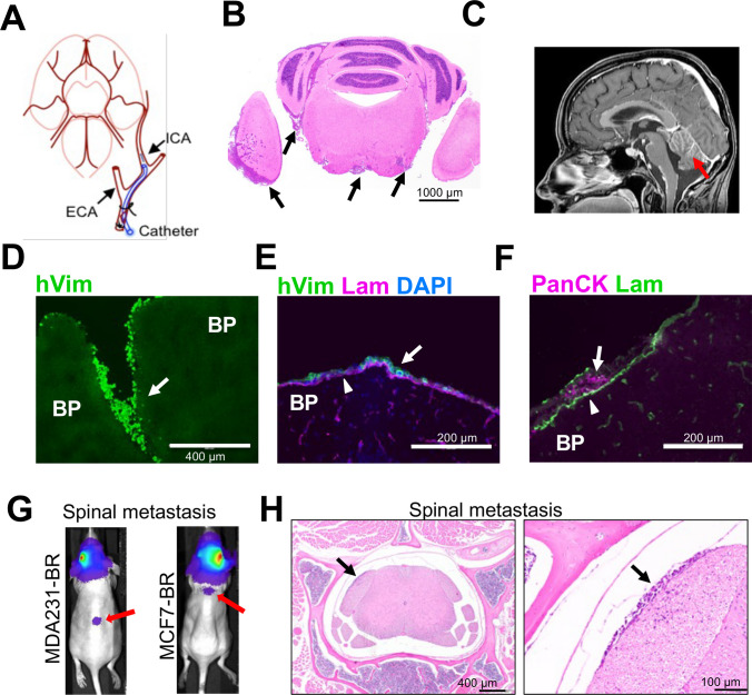 Purpose: Triple-negative breast cancer (TNBC) often metastasizes to the central nervous system (CNS) and has the highest propensity among breast cancer subtypes to develop leptomeningeal disease (LMD). LMD is a spread of cancer into leptomeningeal space that speeds up the disease progression and severely aggravates the prognosis. LMD has limited treatment options. We sought to test whether the common anti-helminthic drug mebendazole (MBZ) may be effective against murine TNBC LMD.