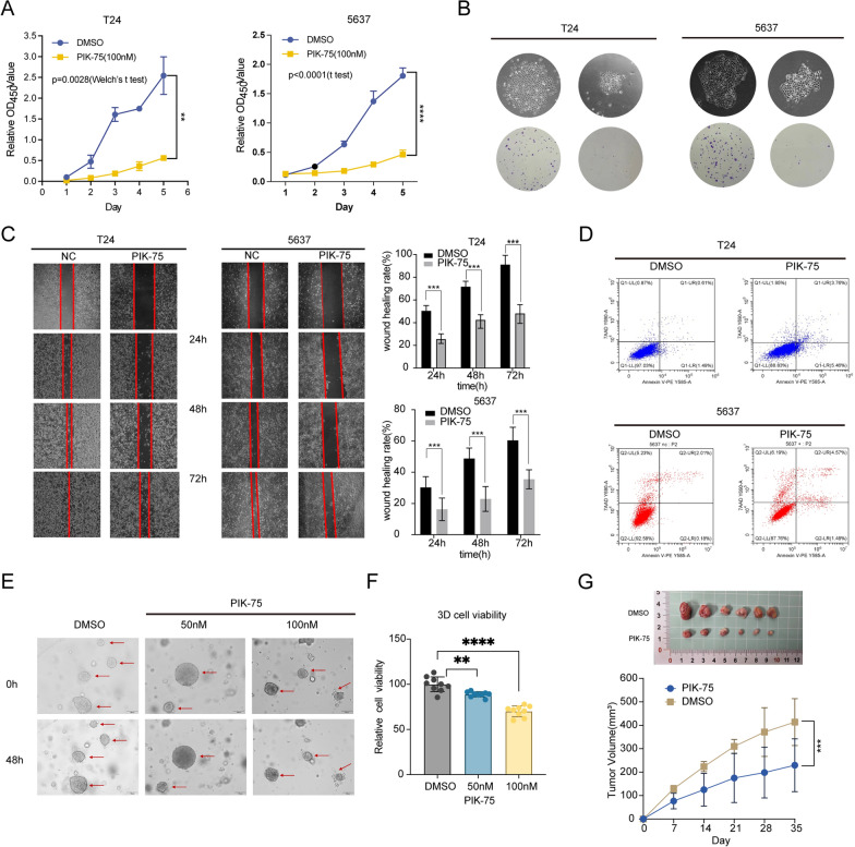 Methods: In this study, we developed a prognostic signature for BCa with uni-Cox + LASSO + multi-Cox survival analysis in multiple independent cohorts. Six machine learning algorithms were adopted to screen out the hub gene, RAC3. IHC staining was used to validate the expression of RAC3 in BCa tumor tissue. RT-qPCR and Western blot were performed to detect and quantify the mRNA and protein levels of RAC3. CCK8, colony formation, wound healing, and flow cytometry analysis of apoptosis were employed to determine cell proliferation, migration, and apoptosis. Molecular docking was used to find small target drugs, PIK-75. 3D cell viability assay was applied to evaluate the ATP viability of bladder cancer organoids before and after PIK-75 treated.