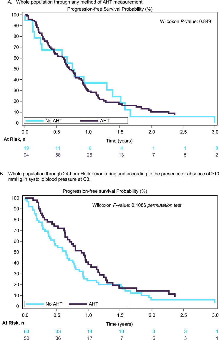 Conclusions: Neither the frequency of AHT nor the increase of BP levels were predictive of efficacy in MBC and mCRC patients treated with bevacizumab-containing chemotherapy.