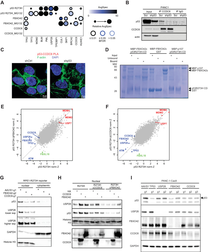Tumor suppressor p53 (TP53) is frequently mutated in cancer, often resulting not only in loss of its tumor-suppressive function but also acquisition of dominant-negative and even oncogenic gain-of-function traits. While wild-type p53 levels are tightly regulated, mutants are typically stabilized in tumors, which is crucial for their oncogenic properties. Here, we systematically profiled the factors that regulate protein stability of wild-type and mutant p53 using marker-based genome-wide CRISPR screens. Most regulators of wild-type p53 also regulate p53 mutants, except for p53 R337H regulators, which are largely private to this mutant. Mechanistically, FBXO42 emerged as a positive regulator for a subset of p53 mutants, working with CCDC6 to control USP28-mediated mutant p53 stabilization. Additionally, C16orf72/HAPSTR1 negatively regulates both wild-type p53 and all tested mutants. C16orf72/HAPSTR1 is commonly amplified in breast cancer, and its overexpression reduces p53 levels in mouse mammary epithelium leading to accelerated breast cancer. This study offers a network perspective on p53 stability regulation, potentially guiding strategies to reinforce wild-type p53 or target mutant p53 in cancer.