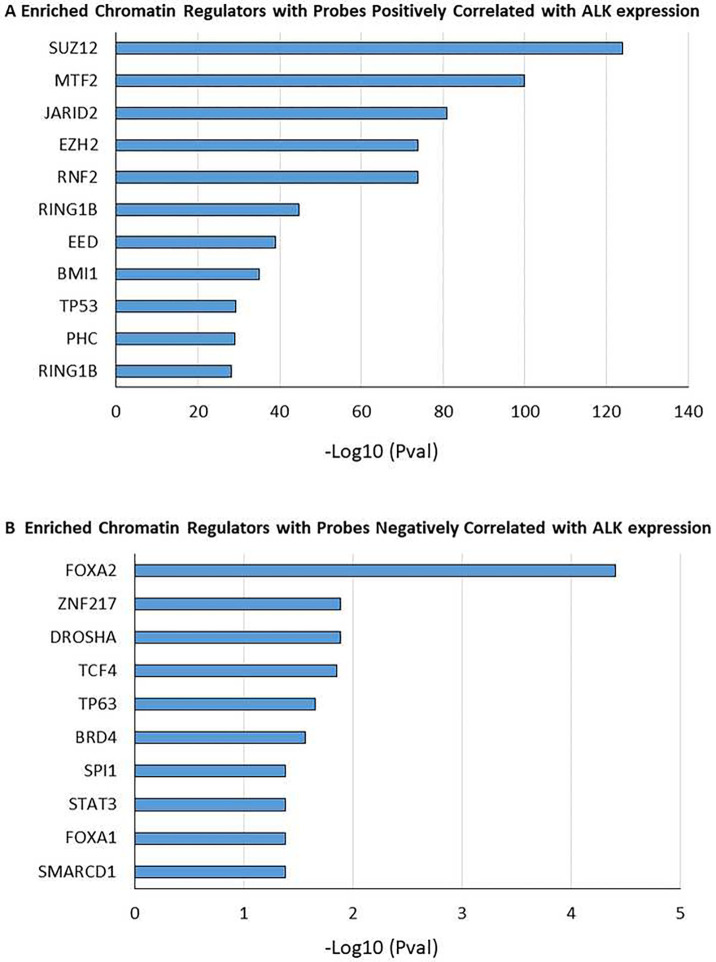 Anaplastic large cell lymphoma (ALCL) is a mature T-cell lymphoma that accounts for for 10-15% of childhood lymphomas. Despite the observation that more than 90% of pediatric cases harbor the anaplastic lymphoma kinase (ALK) rearrangement resulting in aberrant ALK kinase expression, there is significant clinical, morphologic, and biological heterogeneity. To gain insights into the genomic aberrations and molecular heterogeneity within ALK-positive ALCL(ALK+ ALCL), we analyzed 46 pediatric ALK+ ALCLs by whole-exome sequencing, RNA-sequencing, and DNA methylation profiling. Whole-exome sequencing found on average 25 SNV/Indel events per sample with recurring genetic events in regulators of DNA damage (TP53, MDM4), transcription (JUNB), and epigenetic regulators (TET1, KMT2B, KMT2A, KMT2C, KMT2E). Gene expression and methylation profiling consistently subclassified ALK+ ALCLs into two groups characterized by diferential ALK expression levels. The ALK-low group showed enrichment of pathways associated with immune response, cytokine signaling, and a hypermethylated predominant pattern compared to the ALK- high group, which had more frequent copy number changes, and was enriched with pathways associated with cell growth, proliferation, metabolic pathways, and. Taken together, these findings suggest that there is molecular heterogeneity within pediatric ALK+ALCL, predicting distinct biological mechanisms that may provide novel insights into disease pathogenesis and represent prognostic markers.
