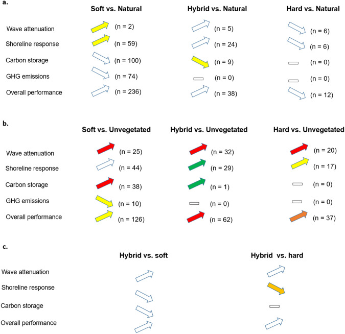 Meta-analysis indicates better climate adaptation and mitigation performance of hybrid engineering-natural coastal defence measures