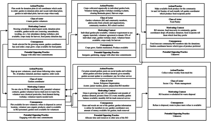 Current food production methods in the United States (US) contribute to environmental degradation as well as food insecurity. Food production by means of community gardens has the potential to reduce the deleterious effects of current production methods. However, many community gardens face challenges that hinder their longevity, thereby reducing the likelihood of the support they might provide for environmentally sustainable food production and decreased food insecurity for community members. Researchers conducted a literature review regarding best practices for community gardens, and used ethnographic research methods to inform a culturo-behavioral systems analysis using the Total Performance System and matrix (systems interdependency) analysis to better understand the cultural practices of two established community gardens in the southwest region of the US. The results of the analyses are presented in terms of recommendations to support each community garden's sustainability. Recommendations regarding future research include environmental manipulations to identify functional relations and potential outcome measures for improving the longevity of community gardens.