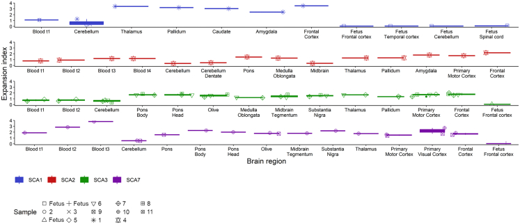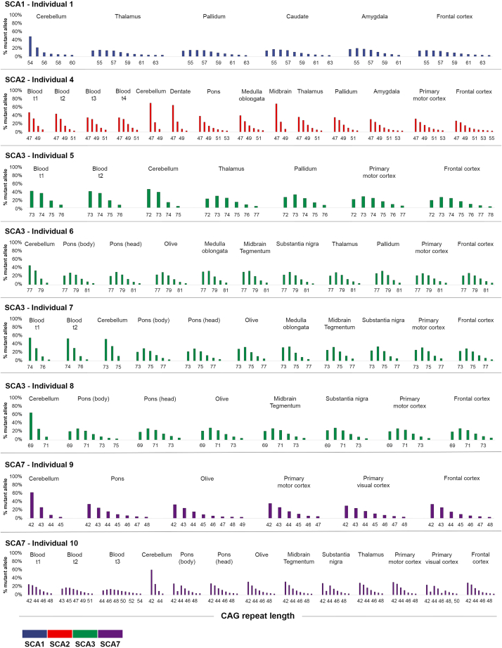 Keywords: ATXN1; ATXN2; ATXN3; ATXN7; CAG repeat; DNA repair; SCA; repeat expansion; somatic instability; spinocerebellar ataxia.