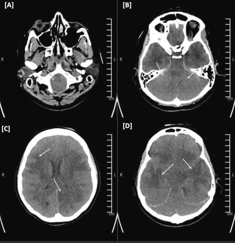Clinical presentation: We report a 30-year-old turkish patient with an initial presentation of upper respiratory tract infection due to COVID-19. Initially, she was admitted to the hospital with generalized tonic-clonic seizure (GTCS) and deterioration in her level of consciousness lapsing into a coma. An initial CT scan showed diffuse brain edema and an MRI head confirmed the suspicion of Acute hemorrhagic leukoencephalitis (AHLE). Despite prompt and diligent osmotic therapy and pulsed intravenous (IV) methylprednisolone, her condition rapidly depreciated and progressed into cerebral edema with gravid sequela of brainstem herniation.