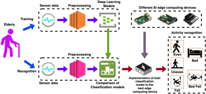 Development of artificial intelligence edge computing based wearable device for fall detection and prevention of elderly people
