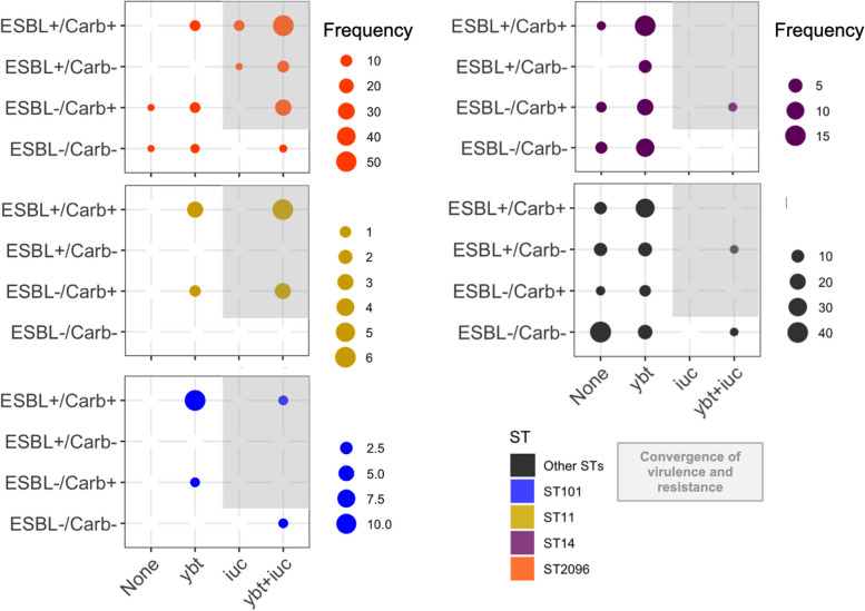 Results: We discovered a diverse population underlying the infections, with most strains belonging to Clonal Complex 14 (CC14) exhibiting dominance. Specifically, we observed the emergence and continuous expansion of strains belonging to the dominant ST2096 in the CC14 clade across hospital wards in recent years. These strains acquired resistance mutations against colistin and extended spectrum β-lactamase (ESBL) and carbapenemase genes, namely blaOXA-48 and blaOXA-232, located on three distinct plasmids, on epidemiological time scales. Strains of ST2096 exhibited a high virulence level with the presence of the siderophore aerobactin (iuc) locus situated on the same mosaic plasmid as the ESBL gene. Integration of ST2096 with EHR data confirmed the significant link between colonization by ST2096 and the diagnosis of sepsis and elevated in-hospital mortality (p-value < 0.05).
