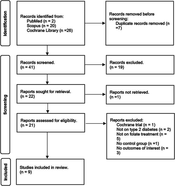 Conclusion: Evidence analyzed in this study suggests that folic acid supplementation in T2DM reduces homocysteine and may mitigate CVDs. However, its effect on inflammation is inconclusive.
